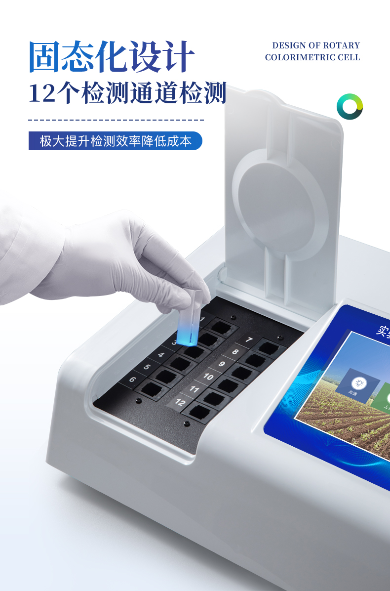 | 土壤中速效N、P、K等多种养分一次性同时浸提测定(农业部速测行业标准起草者)。 | 测试速度:正常熟练程度下,测一个土壤样品(N、P、K)三项需要20分钟(含药剂准备及土样前处理时间),同时检测三个土壤样品(N、P、K)≤40分钟,同时测8个土样≤1小时。 |