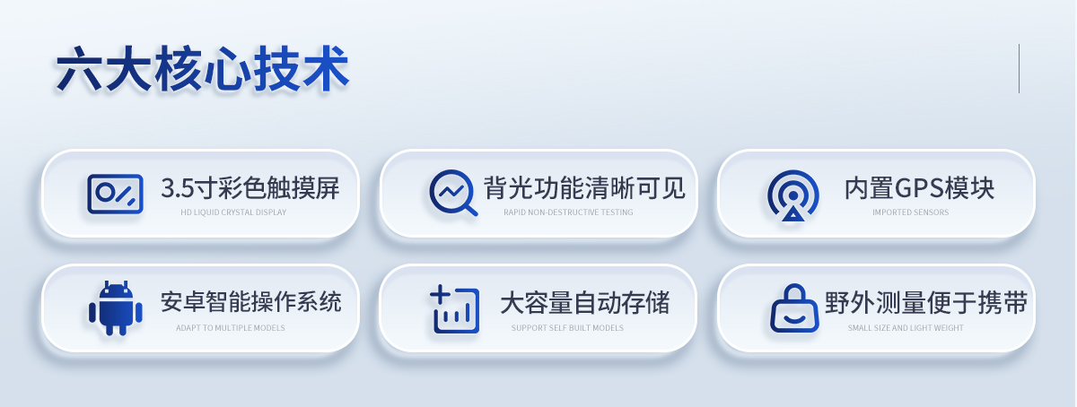 | 1、ARM Cortex-M3架构处理器,Android系统。 | 2、标准Type-c充电,可直接使用手机充电器为设备进行充电。 | 3、连续检测。 | 4、检测结果可上传。 | 5、检测结果可导出Excel表格,连接电脑进行查看。 | 6、检测结果存储容量500万条。 | 7、支持Wi-Fi,检测结果直接传至监管平台。 | 8、3.5寸彩色触摸屏,提供更好的用户体验。 | 9、自带GPS定位功能,数据采集时显示采集点地理坐标。 |