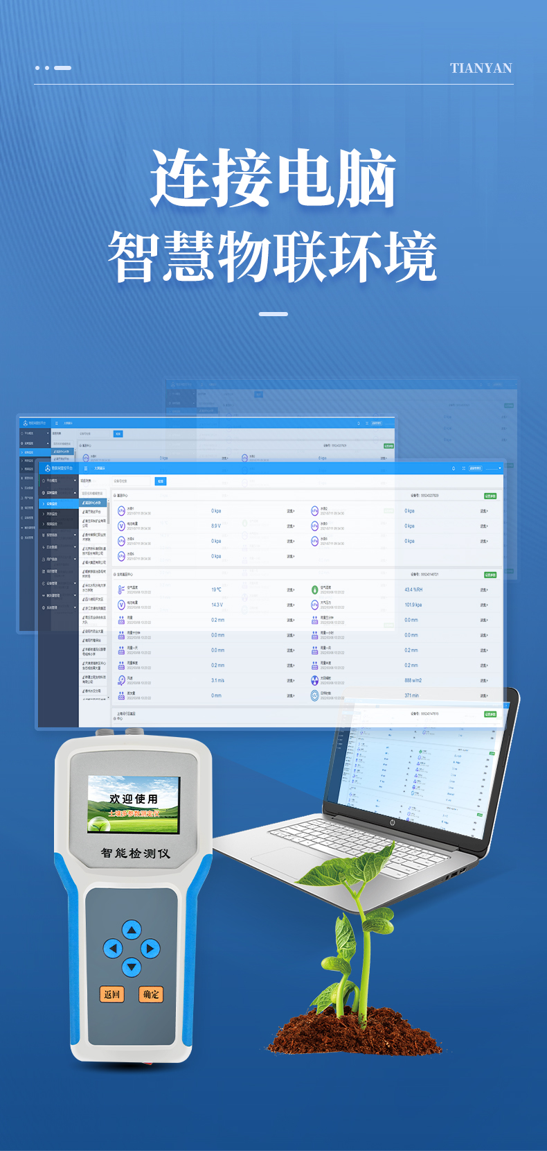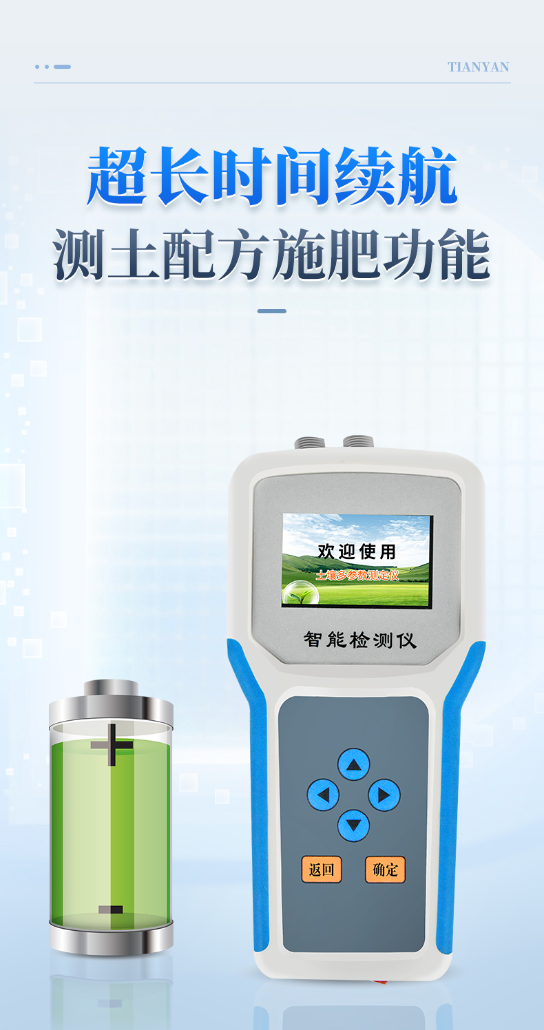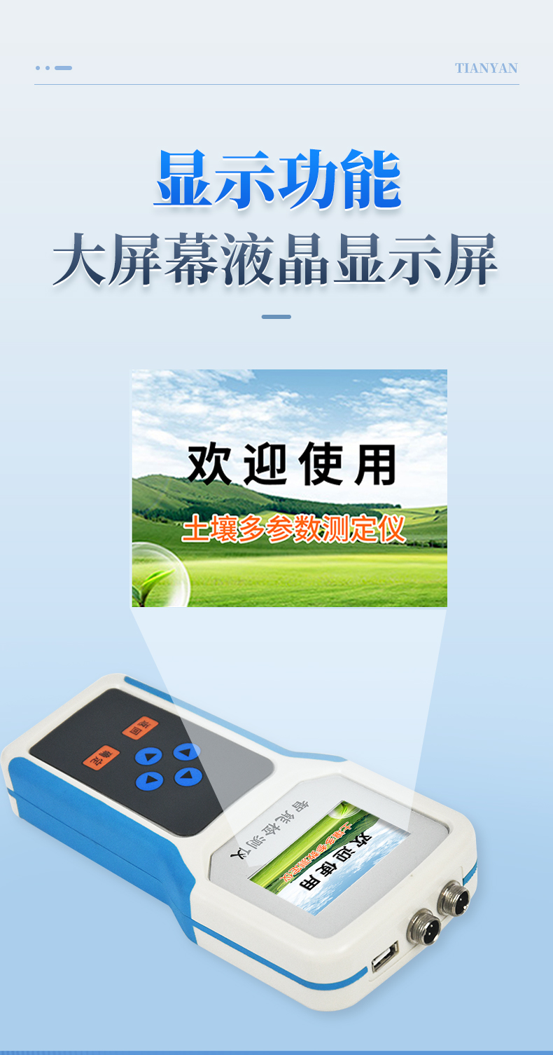 产品描述:产品简介: 土壤多参数测定仪采用一体化结构设计,可快速准确测量土壤中含水量、温度、电导率(盐分)、酸碱度、氮磷钾,可对多处样地、不同土壤深度的水分含量温度盐分和PH进行快速检测和长期连续监测。广泛应用于土壤墒情检测、旱作节水灌溉、精细农业、林业【详情】